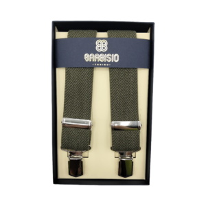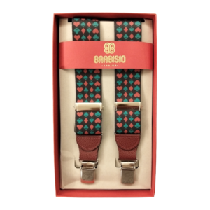 Bretelle verdi con ganci fantasia rombi intrecciati