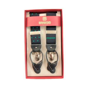 Bretelle blu doppie con asole ganci fantasia Pois verdi