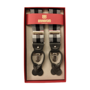 Bretelle in tessuto con asole e ganci fantasia quadri neri