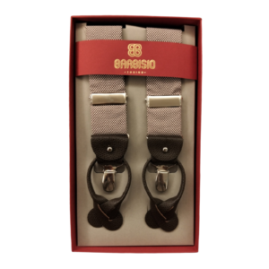 Bretelle in seta con asole e ganci fantasia micropuntinato beige