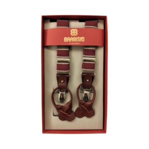 Bretelle in tessuto con asole e ganci fantasia rigata bordeaux
