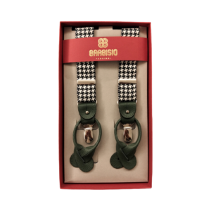 Bretelle in tessuto con asole e ganci fantasia pied poule verdee bianco
