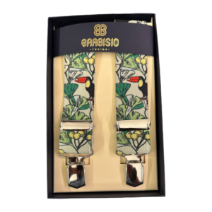 Bretelle in seta con asole e ganci fantasia ghepardi