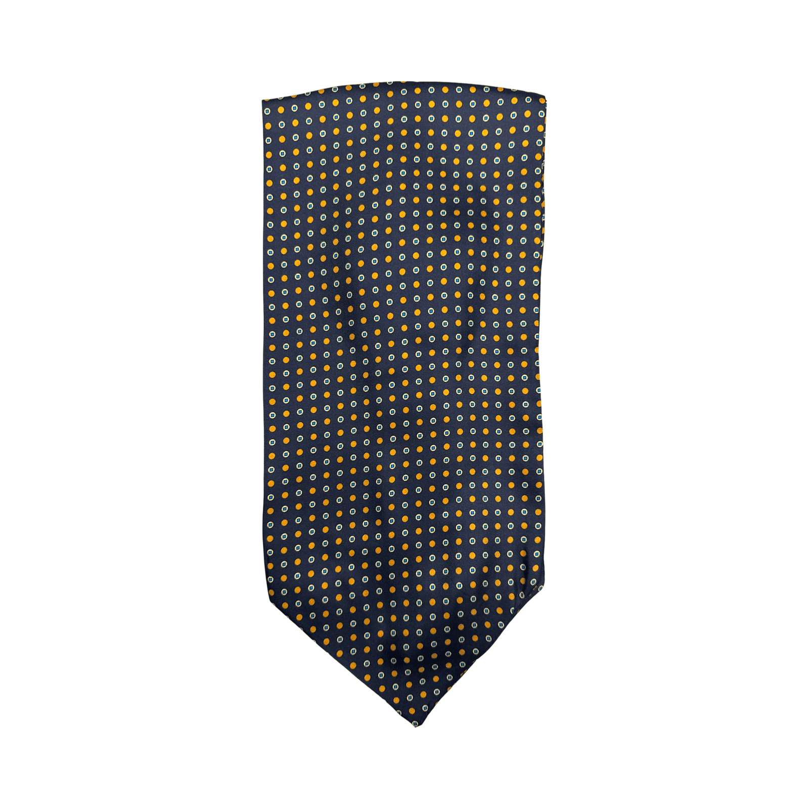Ascot foulard da collo fondo blu fantasia bottoni palliniAscot foulard da collo fondo blu marino fantasia pallini arancio