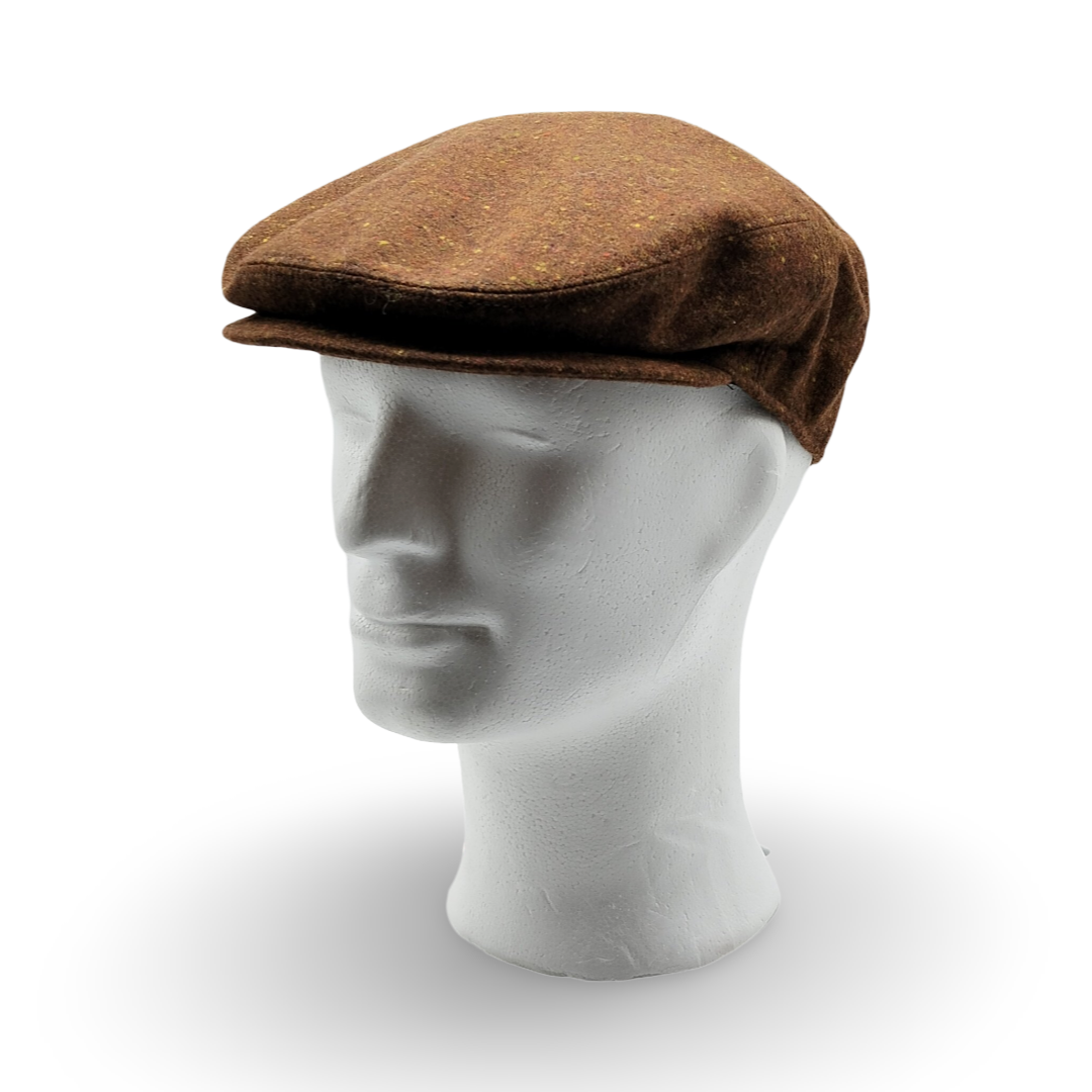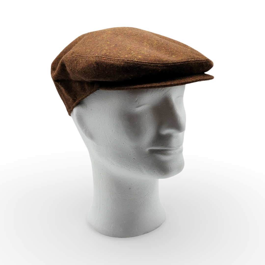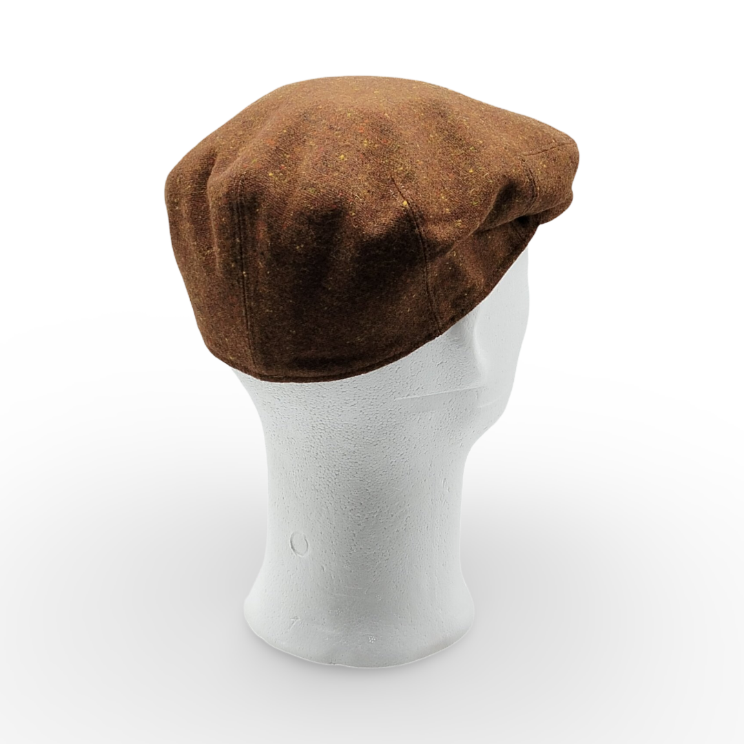 Questa Coppola in Donegal Tweed rappresenta l’essenza dell’eleganza intramontabile. Caratterizzata dalla tipica lavorazione fiammata, la base marrone bruciato è punteggiata da piccoli inserti di colore senape e ocra, creando una texture ricca e vibrante che richiama i paesaggi autunnali. Un accessorio che parla di tradizione, perfetto per l’uomo che cerca un capo distintivo, capace di unire calore naturale e un’estetica ricercata.