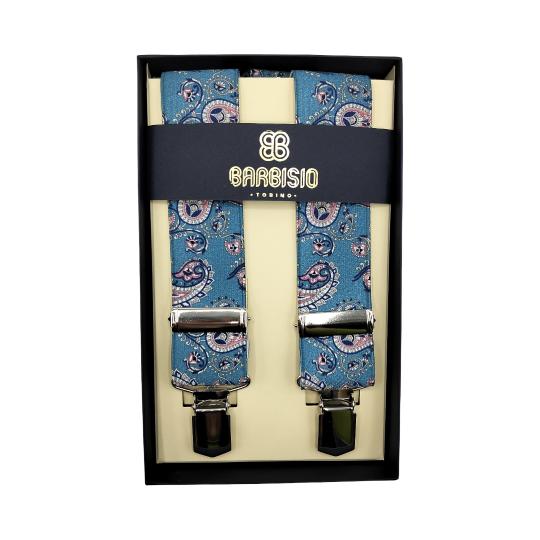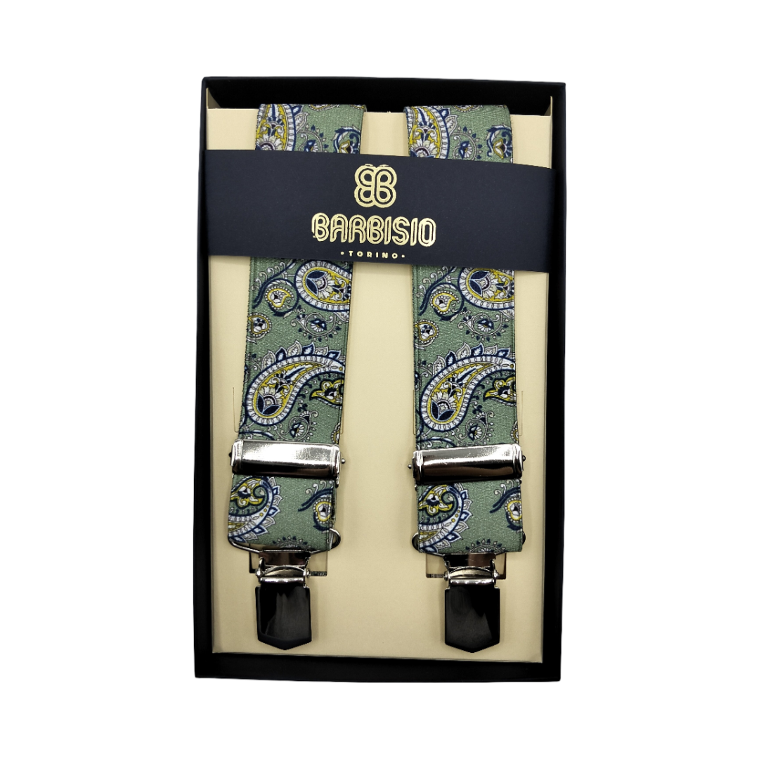 Le bretelle Barbisio Paisley in Raso sono un omaggio all’eleganza coloniale e alla tradizione sartoriale più colta. Il celebre motivo a “goccia”, nato in Persia e reso iconico dai tessitori scozzesi, rivive su un pregiato tessuto in raso che ne esalta i riflessi e la profondità cromatica. È un accessorio pensato per l’uomo che vuole comunicare ricercatezza e un gusto artistico superiore, ideale per chi cerca un’alternativa di classe alla tinta unita.