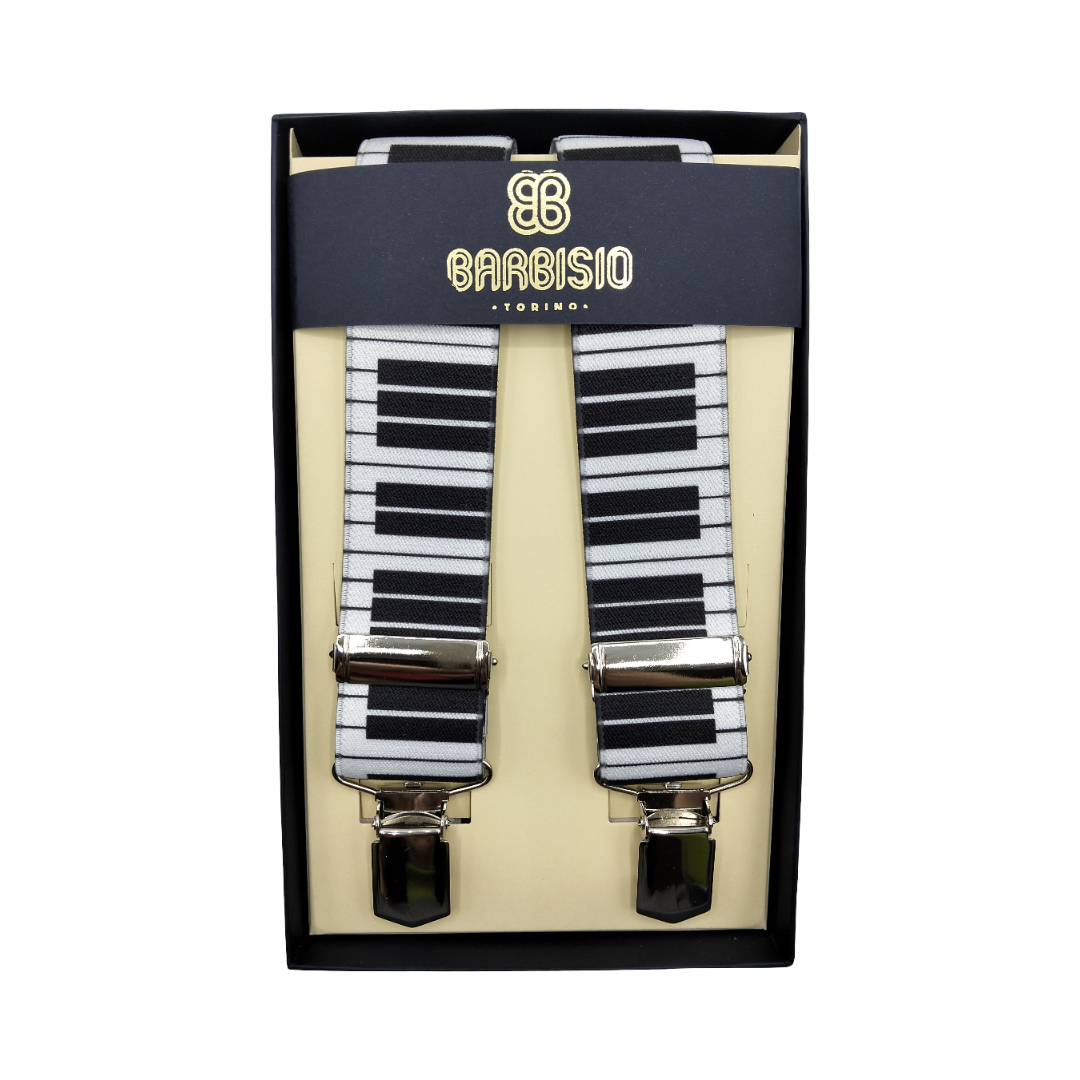 Il ritmo dell’eleganza incontra l’armonia del design. Queste bretelle Barbisio Torino sono una dichiarazione d’amore per la musica e l’arte. Il pattern che riproduce fedelmente i tasti di un pianoforte trasforma un accessorio tradizionale in un elemento scenografico di grande impatto. Ideali per chi vive di creatività, queste bretelle uniscono il rigore del bianco e nero a un’estetica giocosa ma profondamente sofisticata, tipica del brand Barbisio.