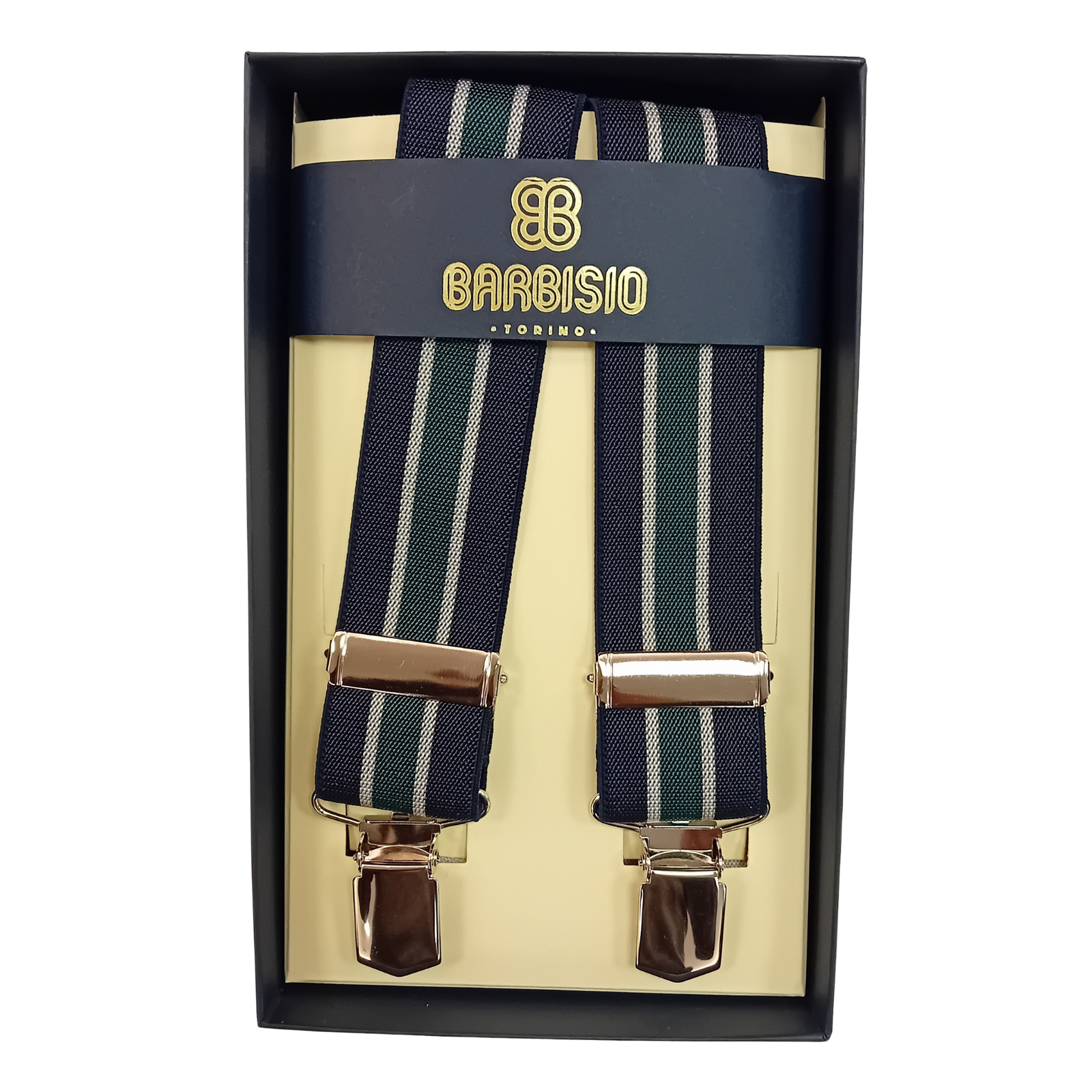 Le Bretelle Barbisio incarnano la perfetta fusione tra l’eleganza college e la sartorialità italiana. Con il loro distintivo design a righe Regimental (o Club), queste bretelle non sono solo un accessorio funzionale, ma un vero e proprio richiamo allo stile preppy e all’heritage anglosassone. La combinazione cromatica di Blu Navy profondo e Verde Bosco vivace le rende ideali per chi cerca un look pulito, distintivo e senza tempo, perfetto per l’ufficio, un weekend in campagna o un evento informale. Un omaggio ai codici di stile dei club d’élite e delle università più prestigiose.