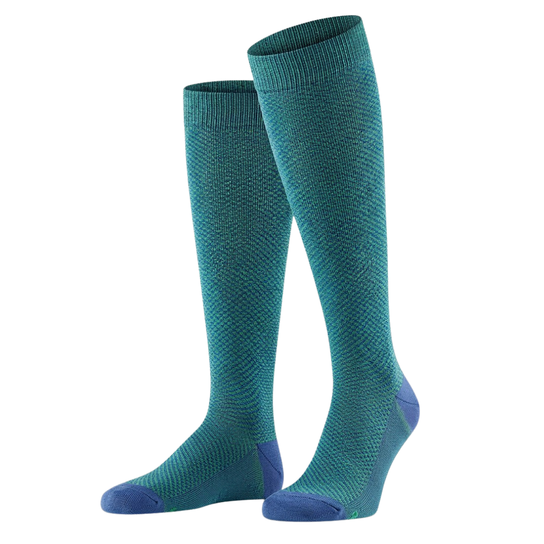 Elevate il vostro guardaroba quotidiano con un accessorio che fonde sapientemente tradizione e modernità. Questa calza lunga da uomo si distingue per l’esclusiva lavorazione Jacquard a micro pattern, capace di creare un sofisticato gioco di sfumature tra il verde ottanio e il blu profondo. Un dettaglio di stile discreto ma inconfondibile, pensato per l’uomo che cura ogni particolare del proprio outfit, dal cappello alle calzature.