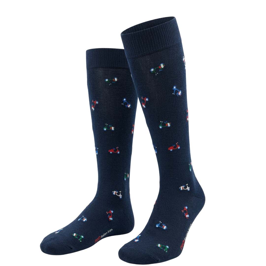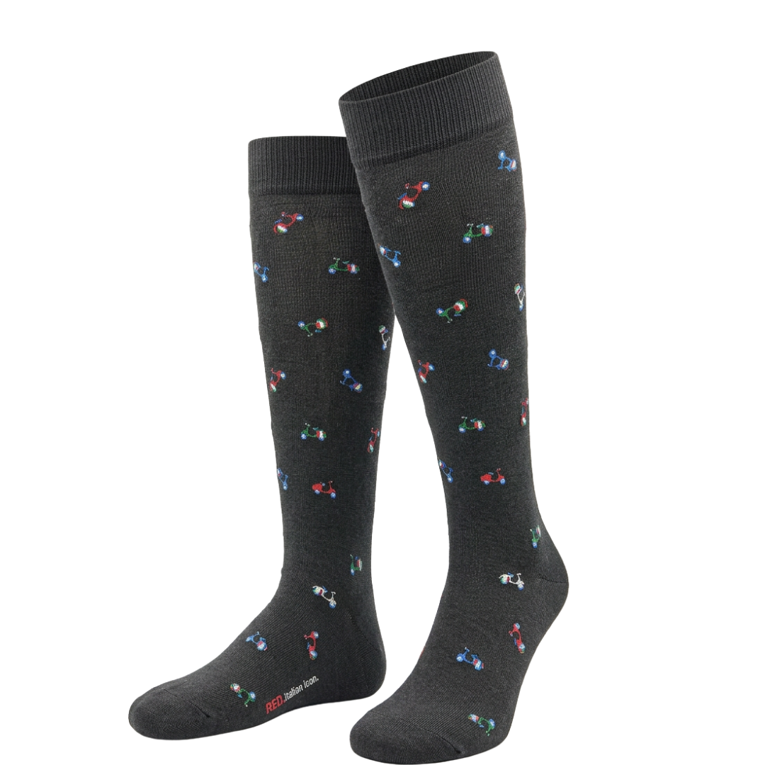 Rivivi il mito italiano con le calze lunghe da uomo a marchio Red, disponibili su Barbisio Torino, caratterizzate dall’iconica stampa Vespa. Queste calze sono un omaggio alla libertà e al design intramontabile, perfette per l’uomo che ama distinguersi con un tocco di originalità e classe. Ideali per aggiungere un accento di personalità a outfit casual o smart casual, combinano stile unico e comfort elevato.