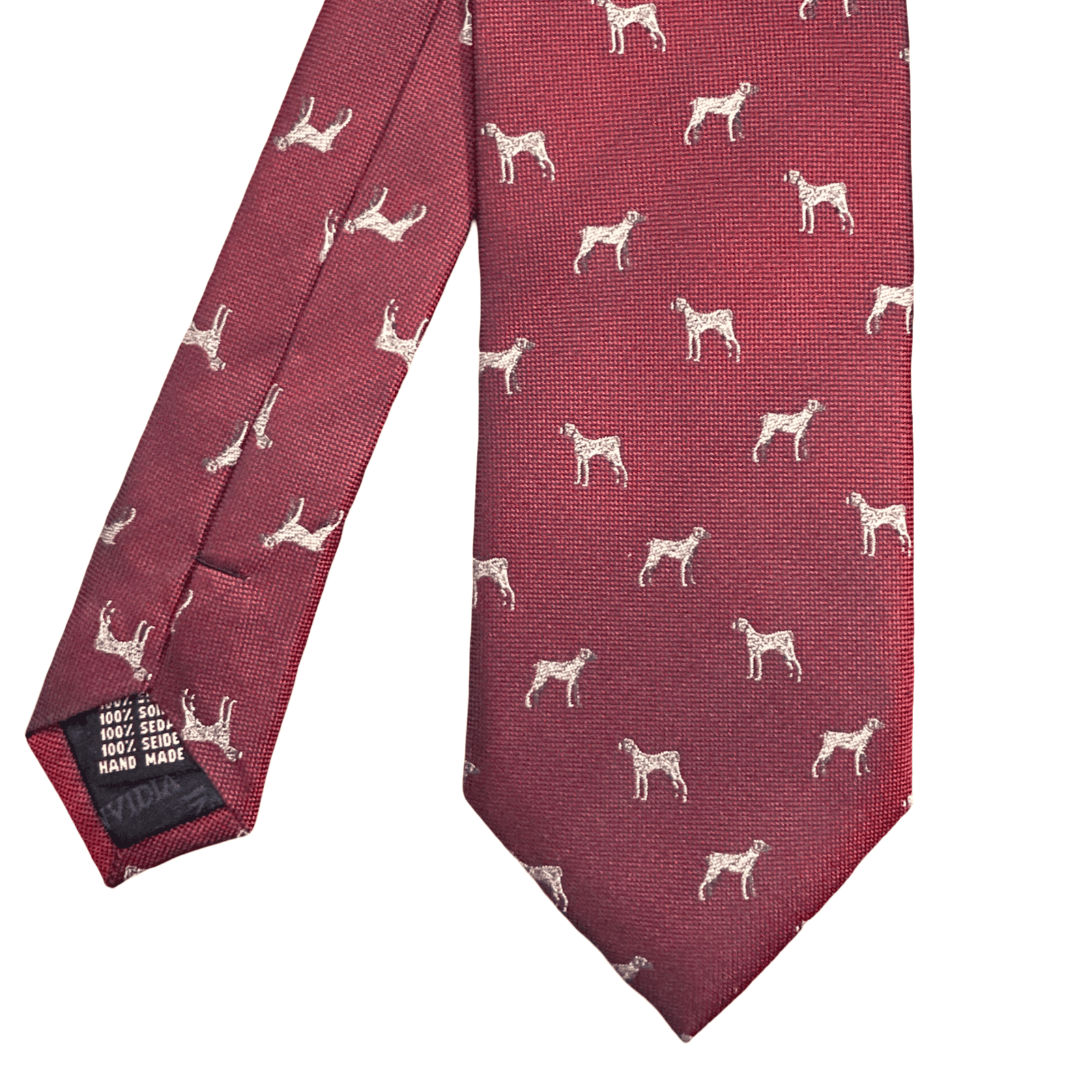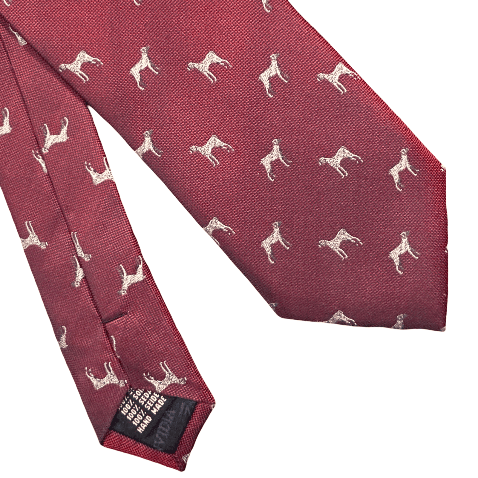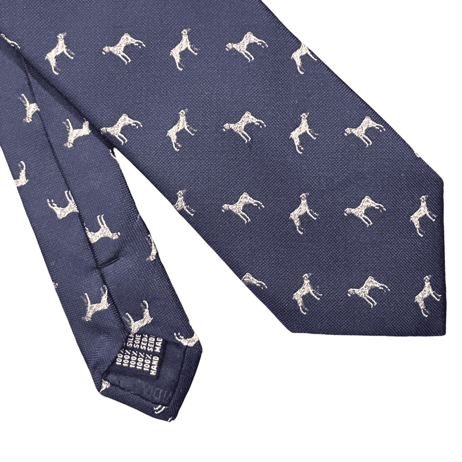 Cravatta in seta con fantasia di cani da caccia, un motivo dal gusto classico e deciso che richiama la tradizione sartoriale inglese. Il disegno curato nei dettagli aggiunge carattere ed eleganza, rendendo la cravatta ideale per chi apprezza uno stile distintivo ma equilibrato. Perfetta per valorizzare completi formali o spezzati dal gusto raffinato.