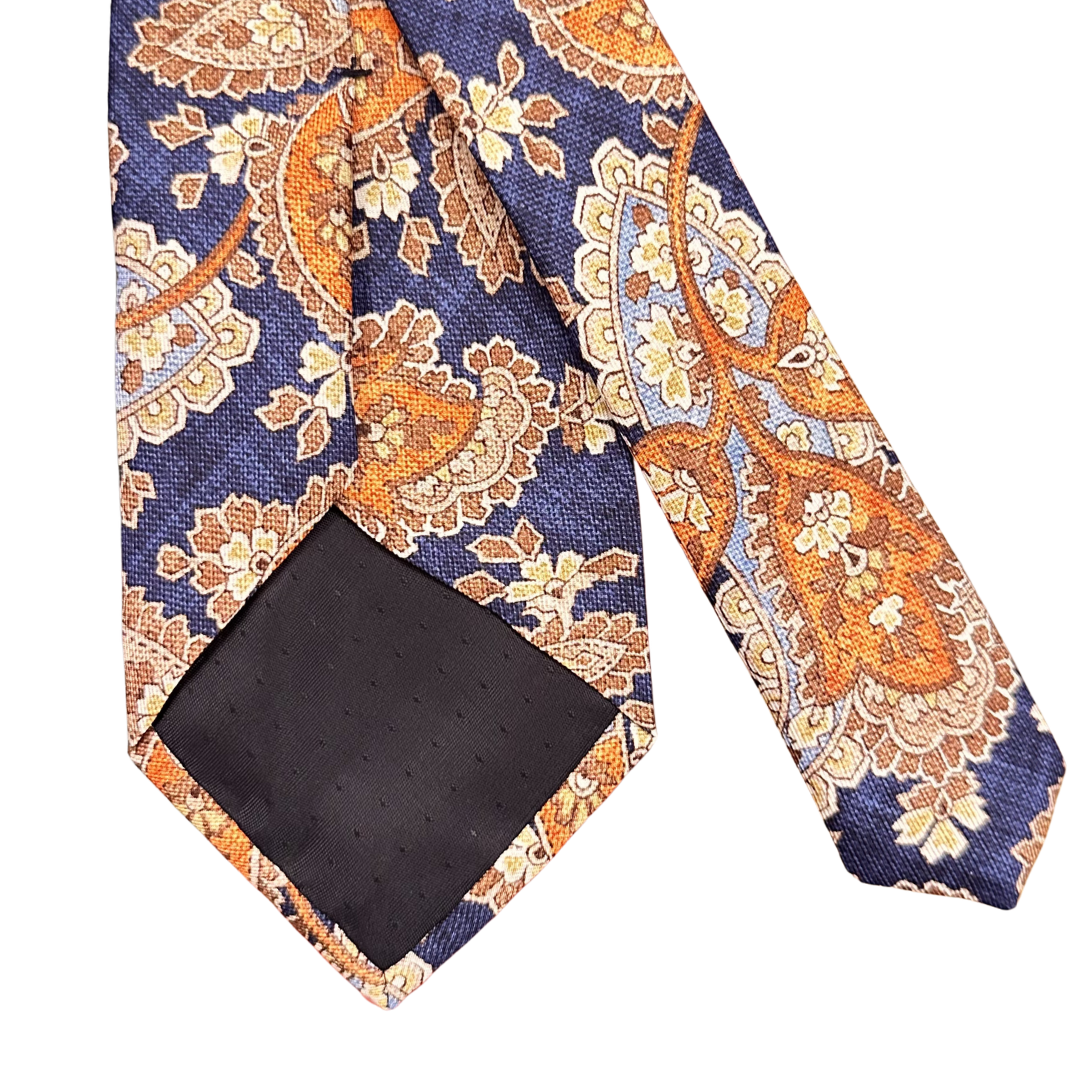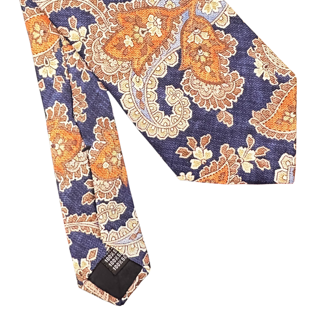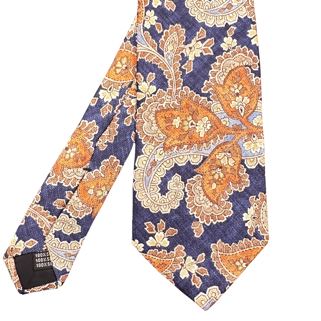 Il pilastro fondamentale dell’eleganza maschile. Questa cravatta incarna l’equilibrio perfetto tra autorità e decoro: il fondo blu navy, intenso e profondo, fornisce la base ideale per un raffinato motivo cashmere dai toni sfumati. Realizzata in pura seta jacquard, questa cravatta è progettata per l’uomo che cerca un accessorio capace di adattarsi con naturalezza sia ai contesti istituzionali che alle occasioni più celebrative. Un pezzo di rara eleganza che non conosce il passare delle stagioni.
