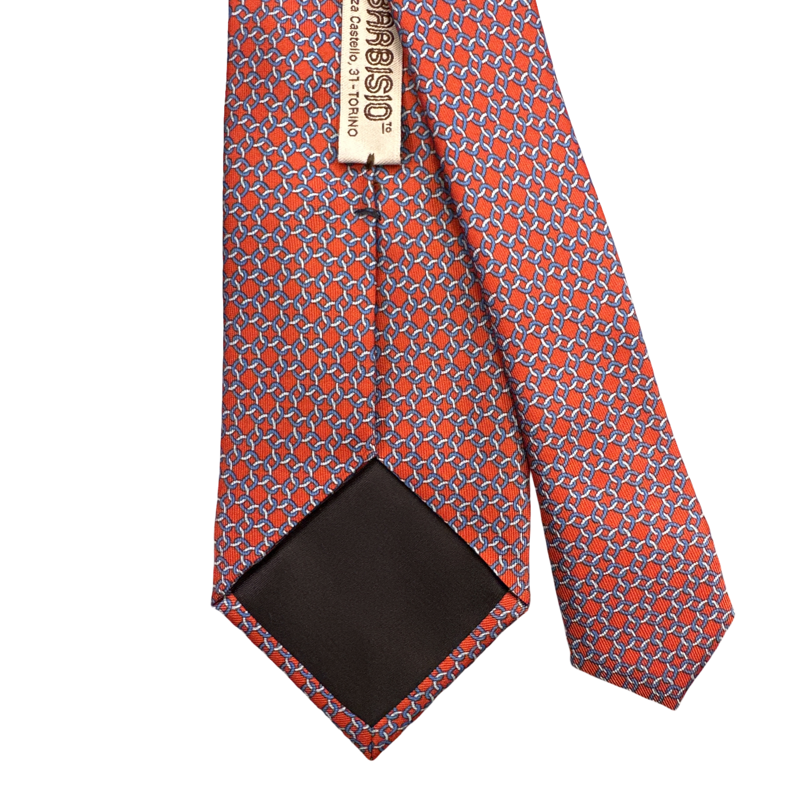 Cravatta fantasia microfantasia geometrica su fondo corallo