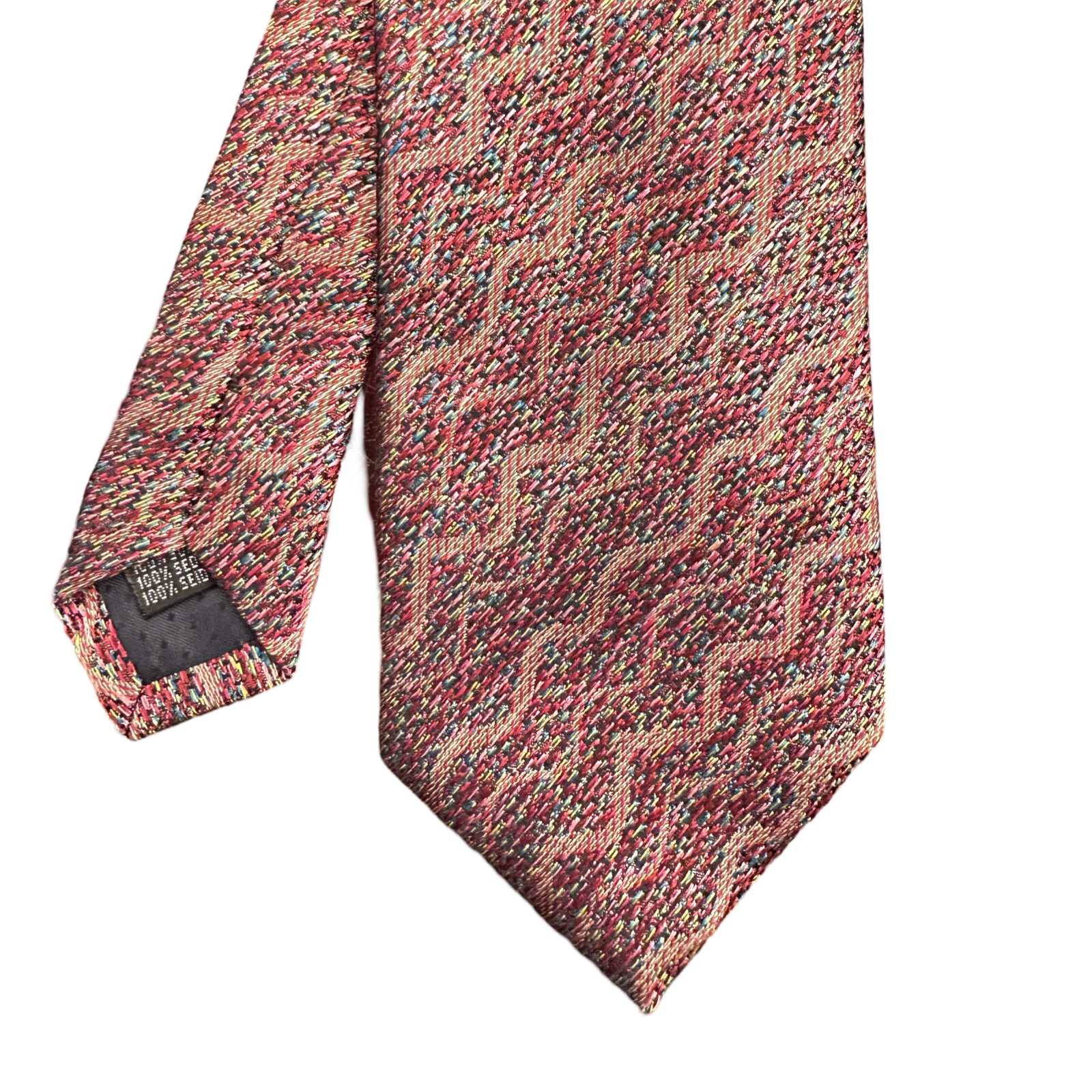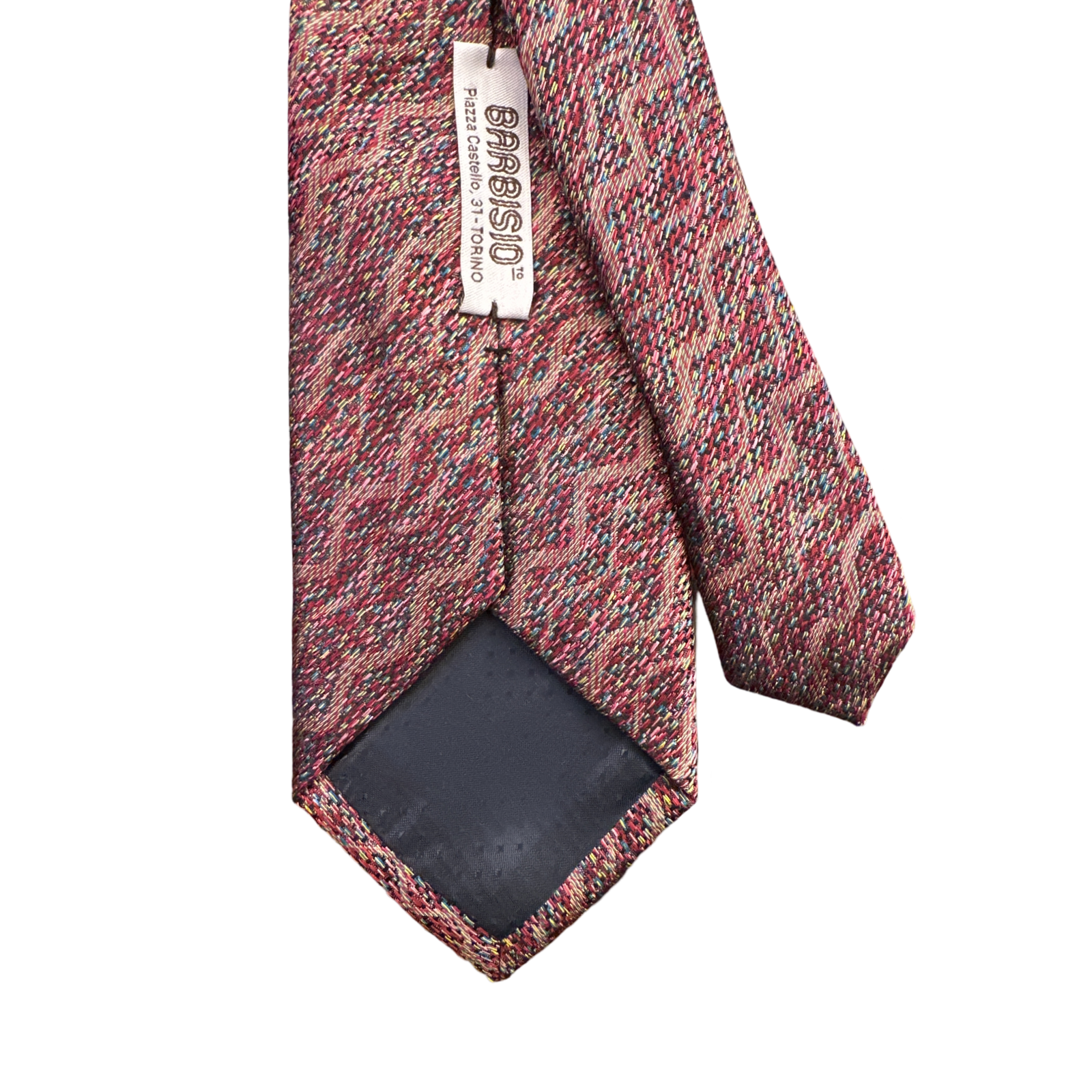 Cravatta base denim fantasia geometrica piccoli motivi bianchi e rosa