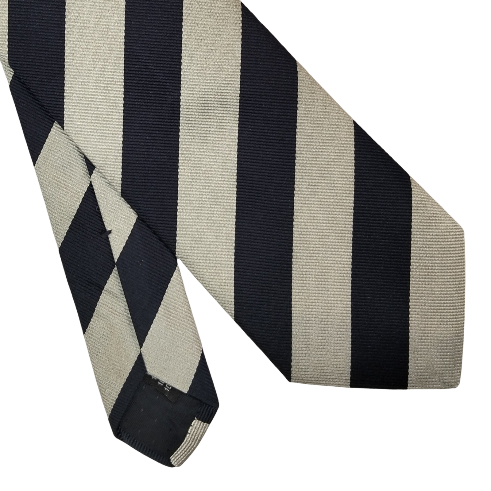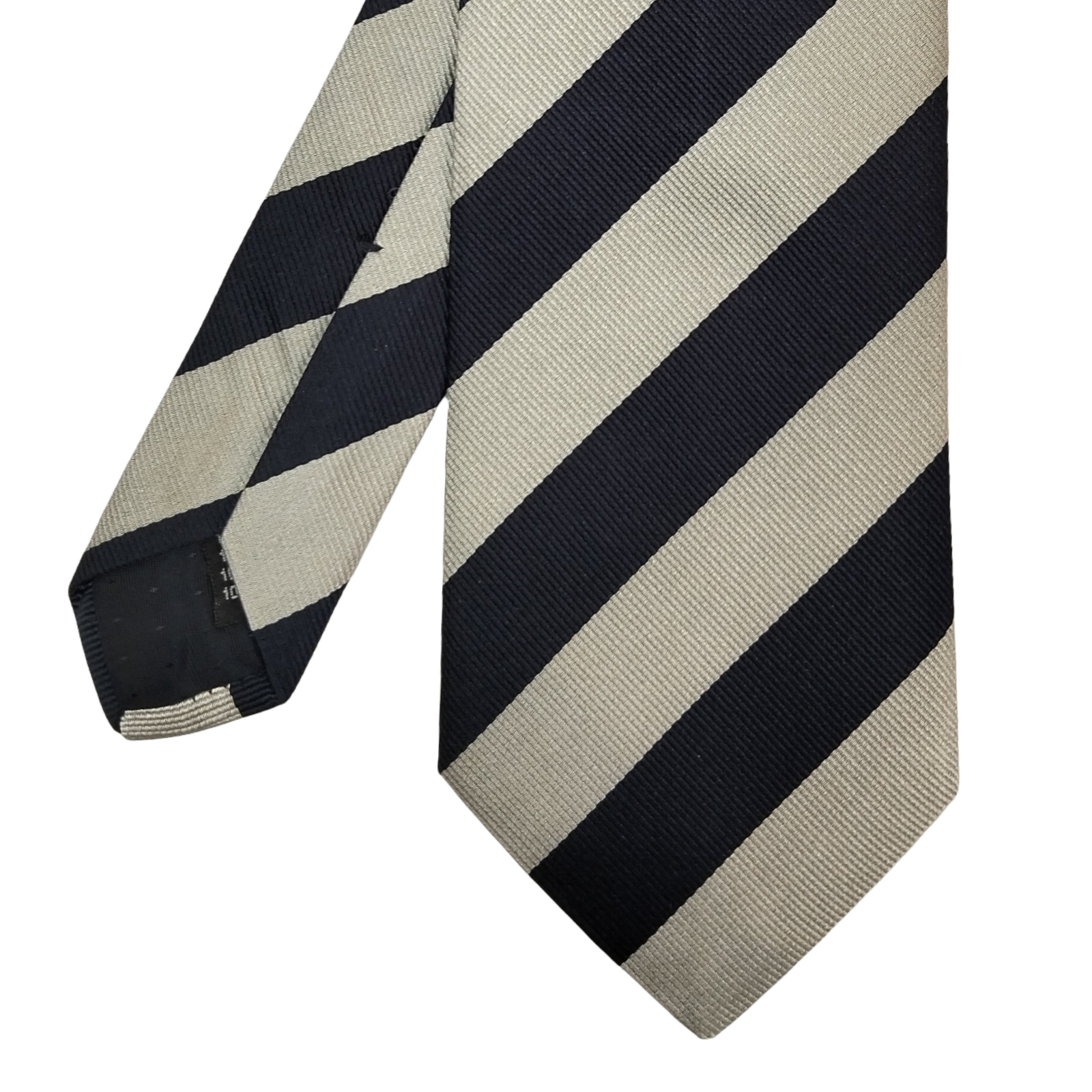 La nostra Cravatta Regimental in Seta Pura nell’audace e raffinata combinazione di Blu Scuro e grigio. Questo contrasto netto e pulito dona un tocco di freschezza e formalità, rendendola la scelta perfetta per il completo da ufficio più formale o per eventi e cerimonie importanti, come un matrimonio di giorno o un battesimo.
