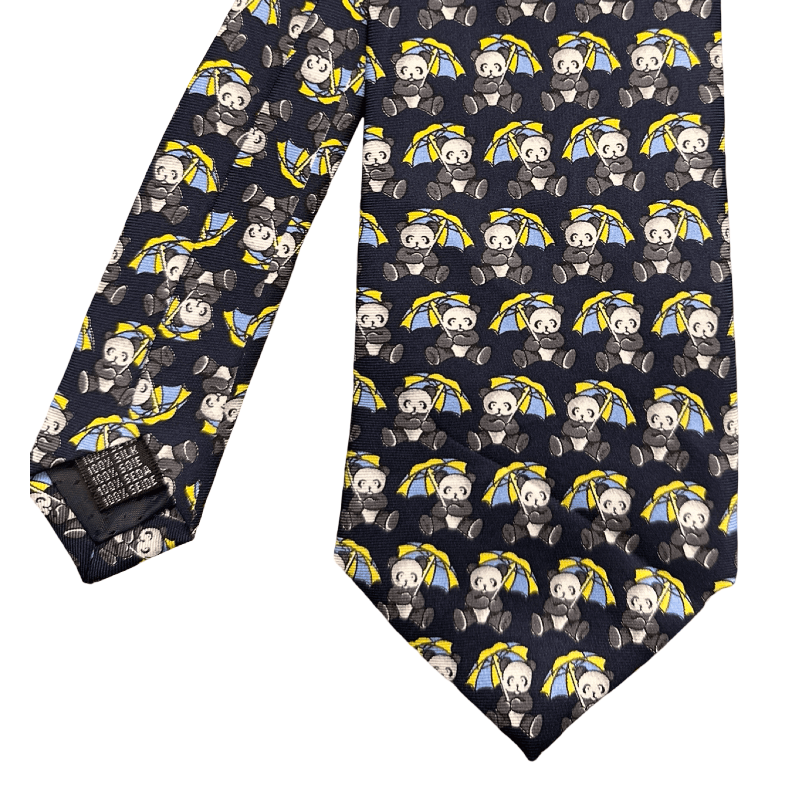 Questa cravatta rappresenta il perfetto equilibrio tra l’ironia contemporanea e l’eleganza classica del guardaroba maschile. Il motivo con il panda in versione gentleman piemontese, riparato da un ombrello, aggiunge un tocco di personalità e conversazione a un accessorio tradizionalmente formale. Lo sfondo blu profondo garantisce una versatilità eccezionale, rendendola un pezzo distintivo per chi non vuole prendersi troppo sul serio senza rinunciare al decoro.