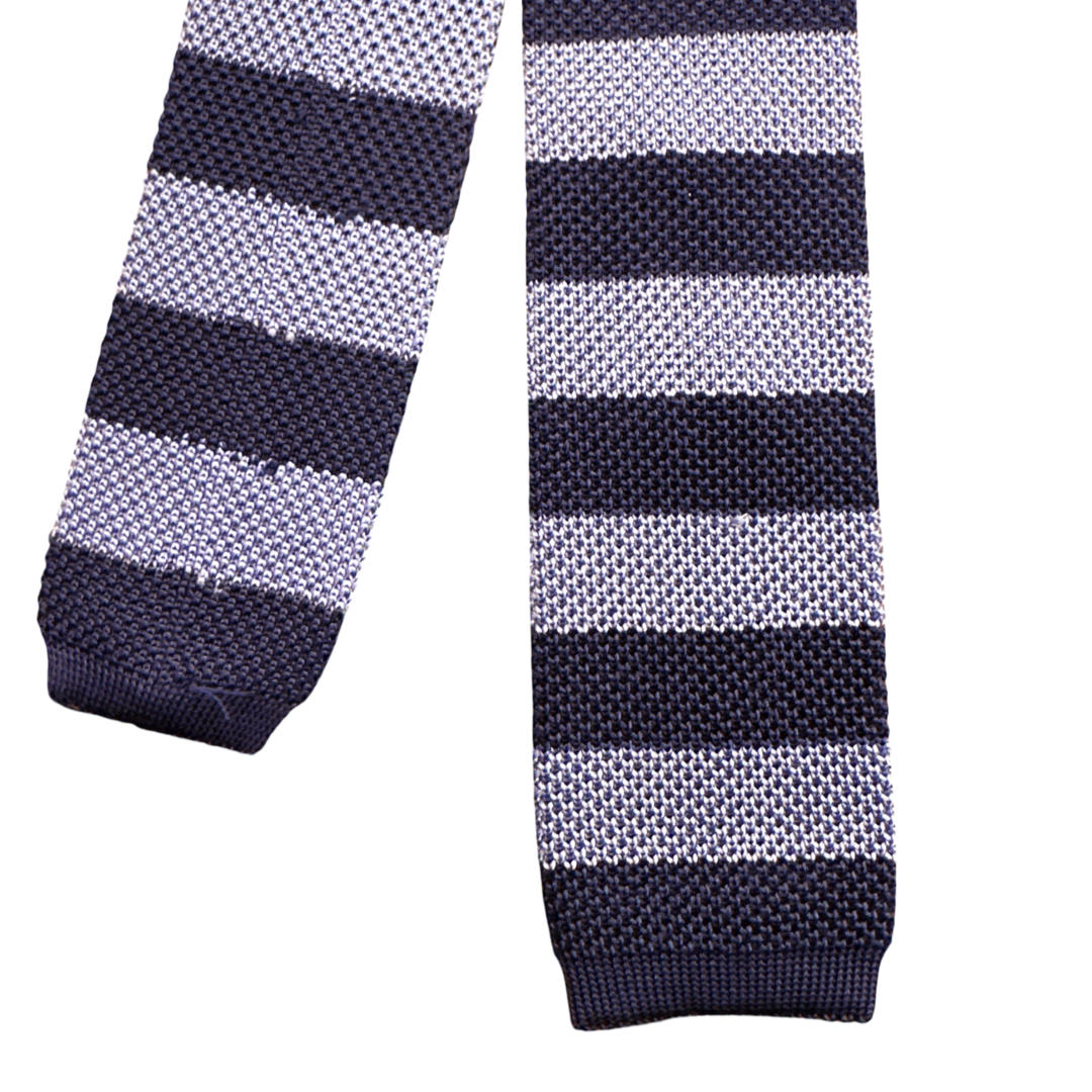 Cravatta fantasia tricot rigata blu e azzurra
