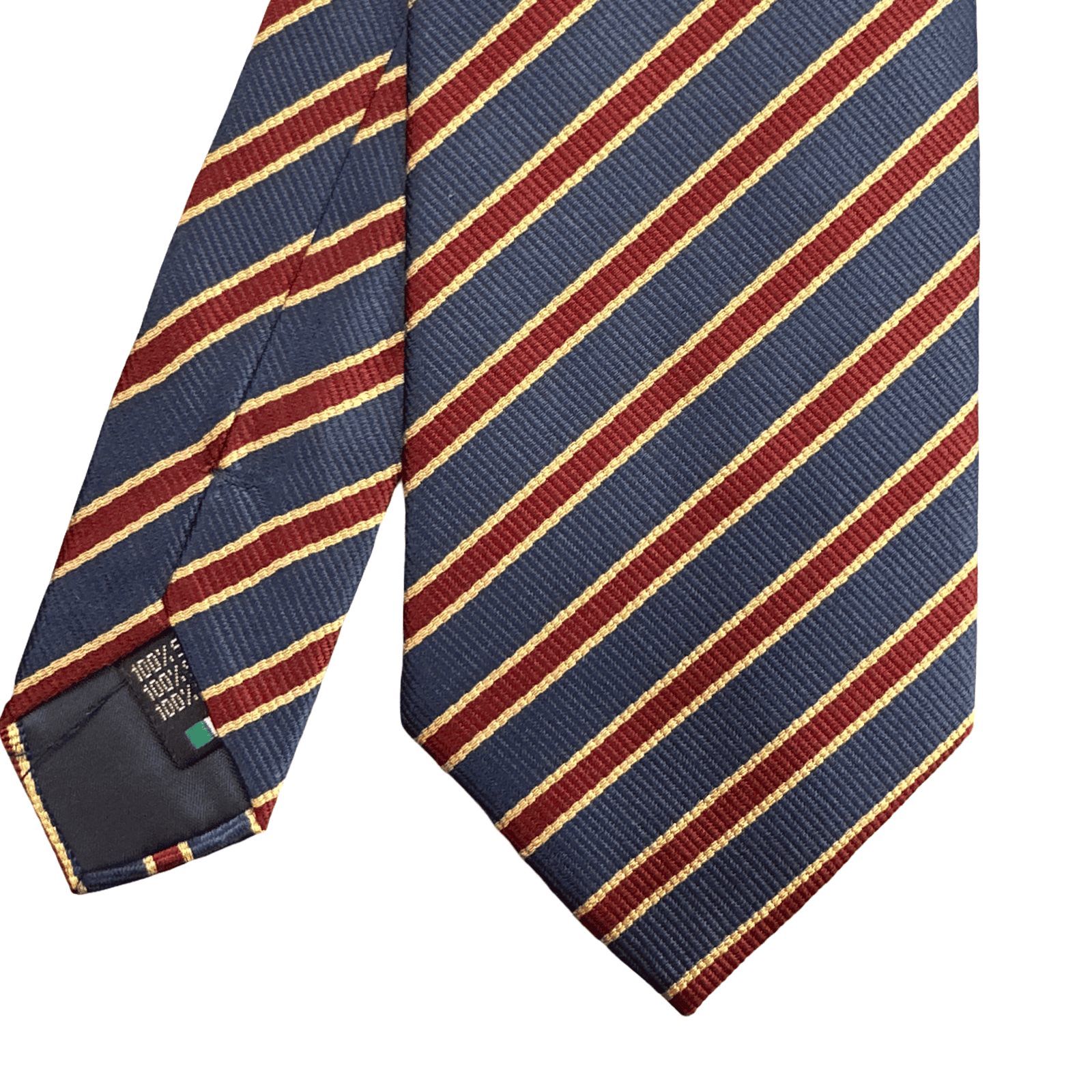 L’essenza dello stile Heritage rivive in questa cravatta Reggimental dal fascino solenne. Il corpo centrale in blu navy, simbolo di affidabilità ed eleganza, è arricchito da una sequenza di righe bordeaux dal tono caldo, incorniciate da profili color oro che catturano la luce con estrema discrezione. Realizzata in 100% pura seta, questa creazione di Barbisio Torino è un omaggio alla tradizione sartoriale, pensata per chi desidera un accessorio che comunichi autorevolezza e un gusto colto e ricercato.