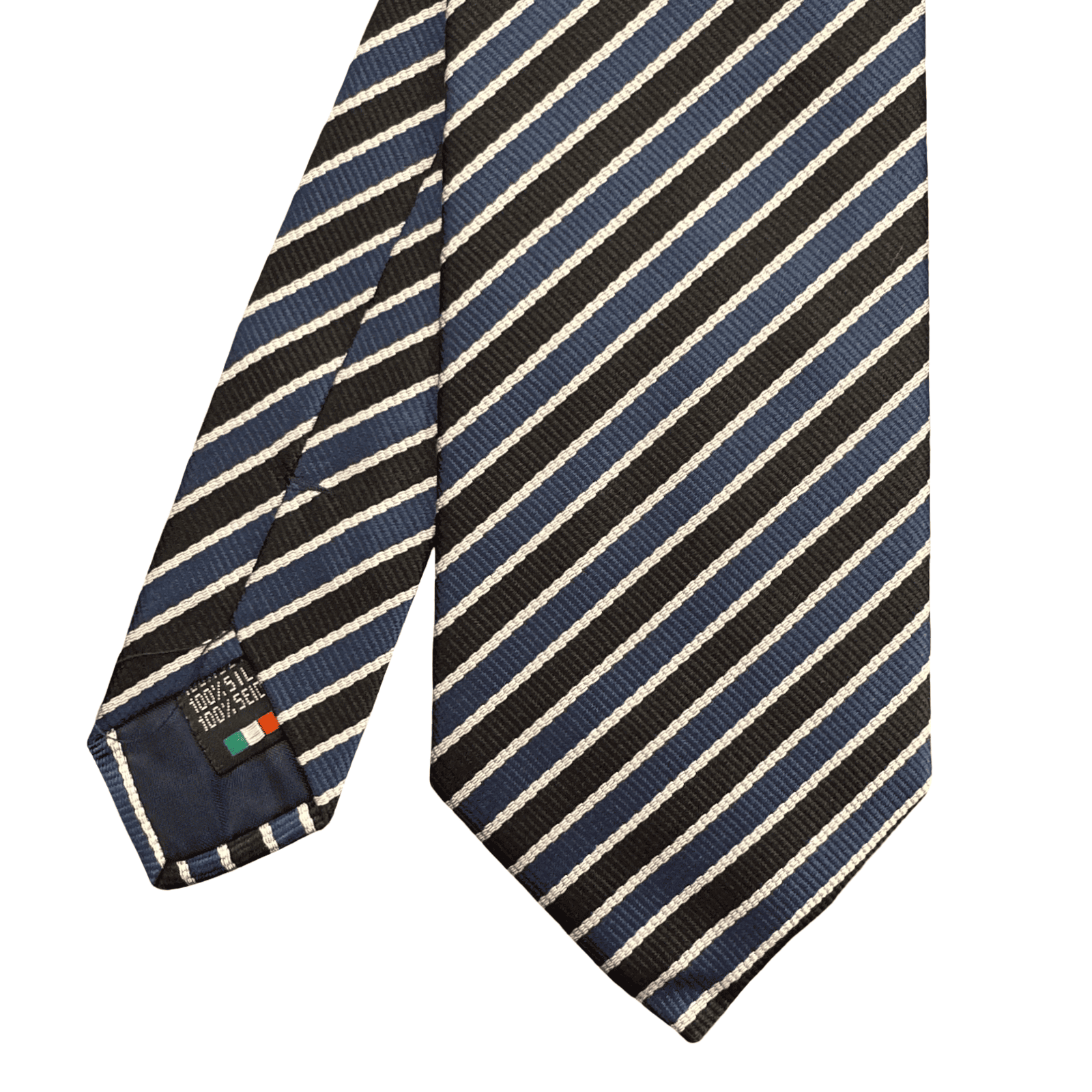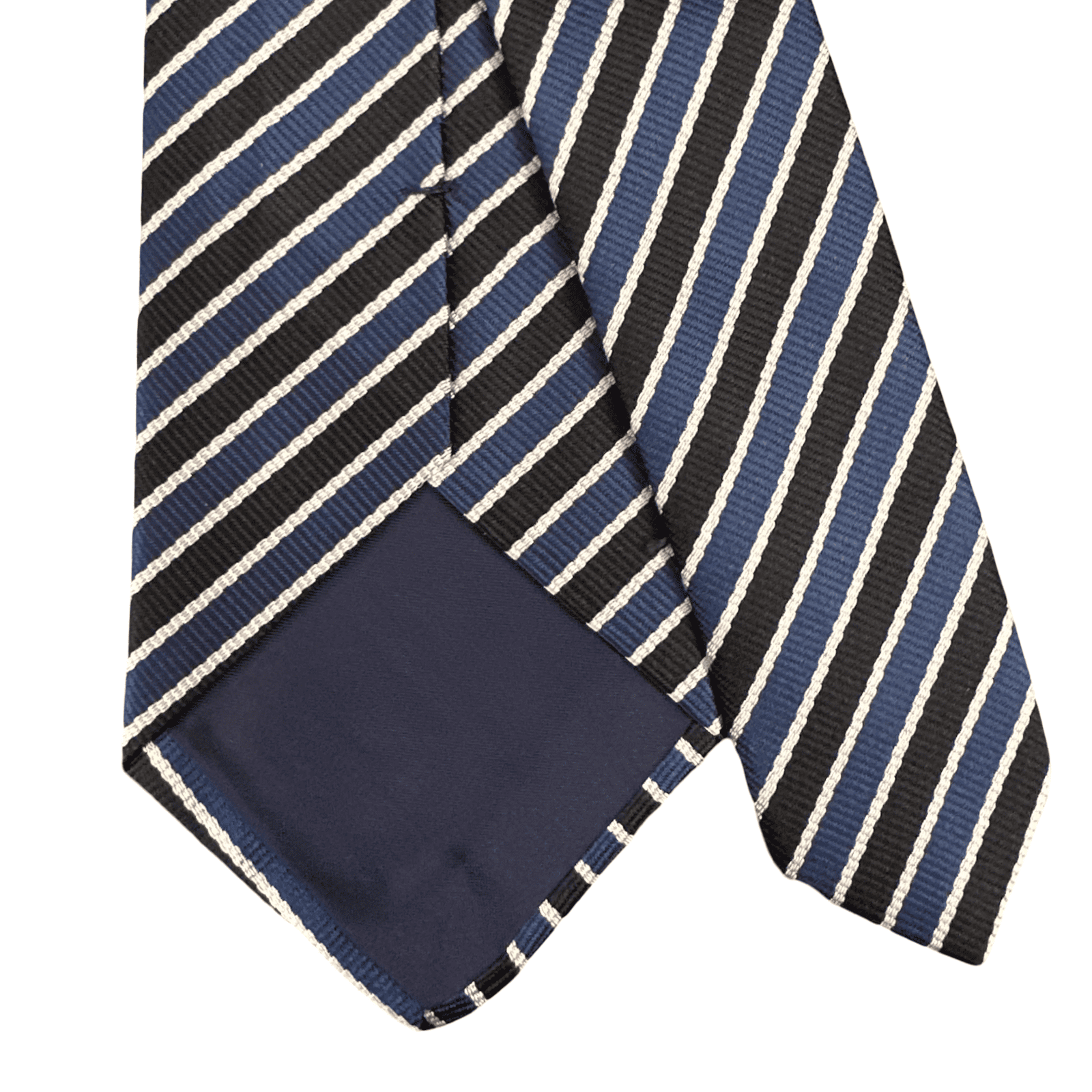 Stile e vestibilità La cravatta blu e nero è il complemento ideale per l’abito “midnight blue” o il classico completo nero da ufficio. La presenza della riga bianca invita all’abbinamento con una camicia bianca in popeline, creando un richiamo visivo impeccabile. È la scelta perfetta per contesti formali serali, eventi di gala o per il professionista che desidera un look austero ma ricercato. Provatela con un ferma-cravatta in argento per esaltare ulteriormente le righe bianche.