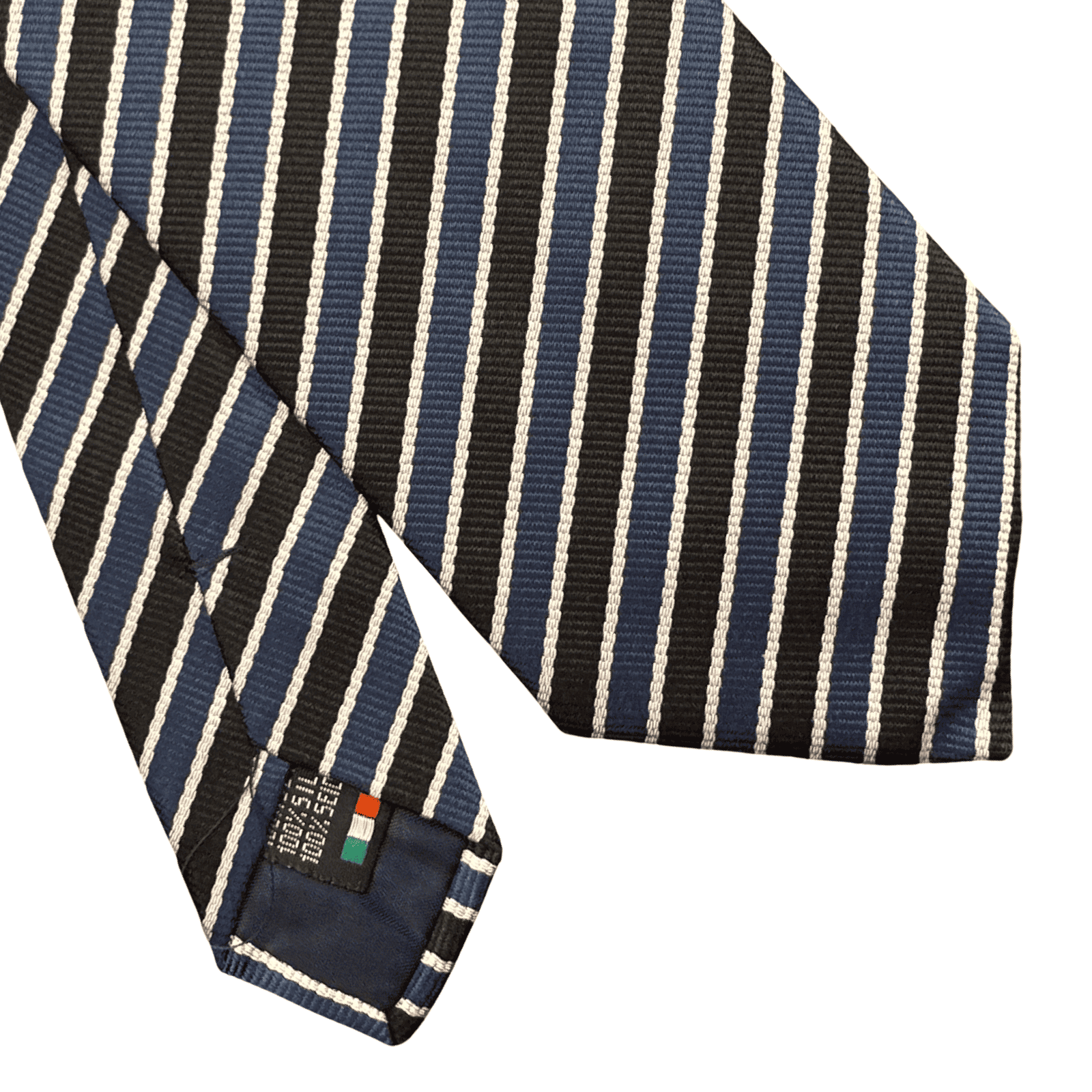 Un accessorio che ridefinisce i canoni della classicità. Questa cravatta reggimental fonde le tonalità più profonde del guardaroba maschile: il blu notte e il nero. Il ritmo scuro della seta è interrotto da nitide righe bianche che agiscono come punti di luce, conferendo al design una pulizia estetica senza pari. Realizzata in 100% pura seta, questa creazione di Barbisio Torino è dedicata all’uomo che ricerca un’eleganza discreta, quasi architettonica, dove la qualità del materiale parla più del colore.