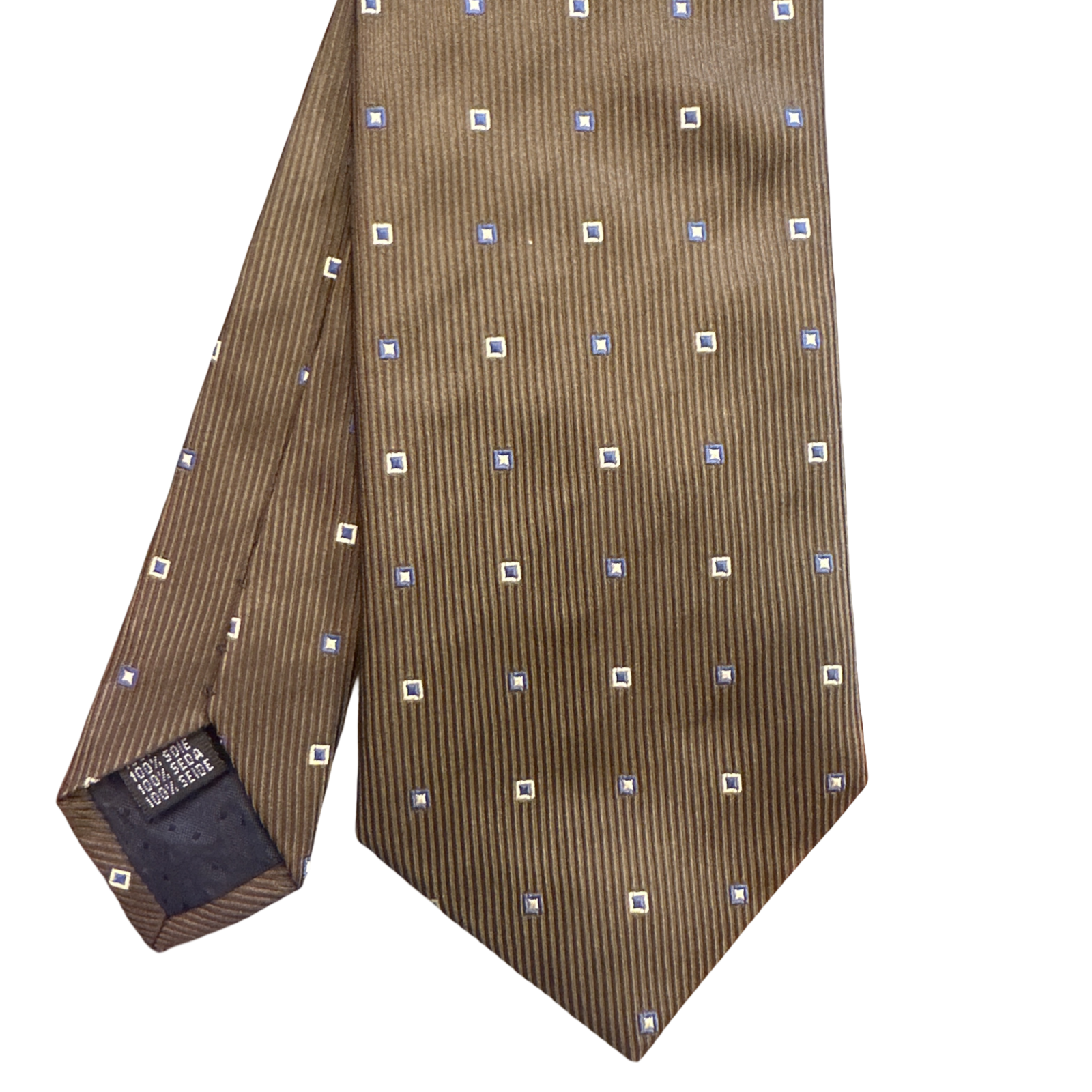 Sciarpetta tubolare in seta fondo grigioCravatta verde fantasia motivo geometrico a quadrati regolari