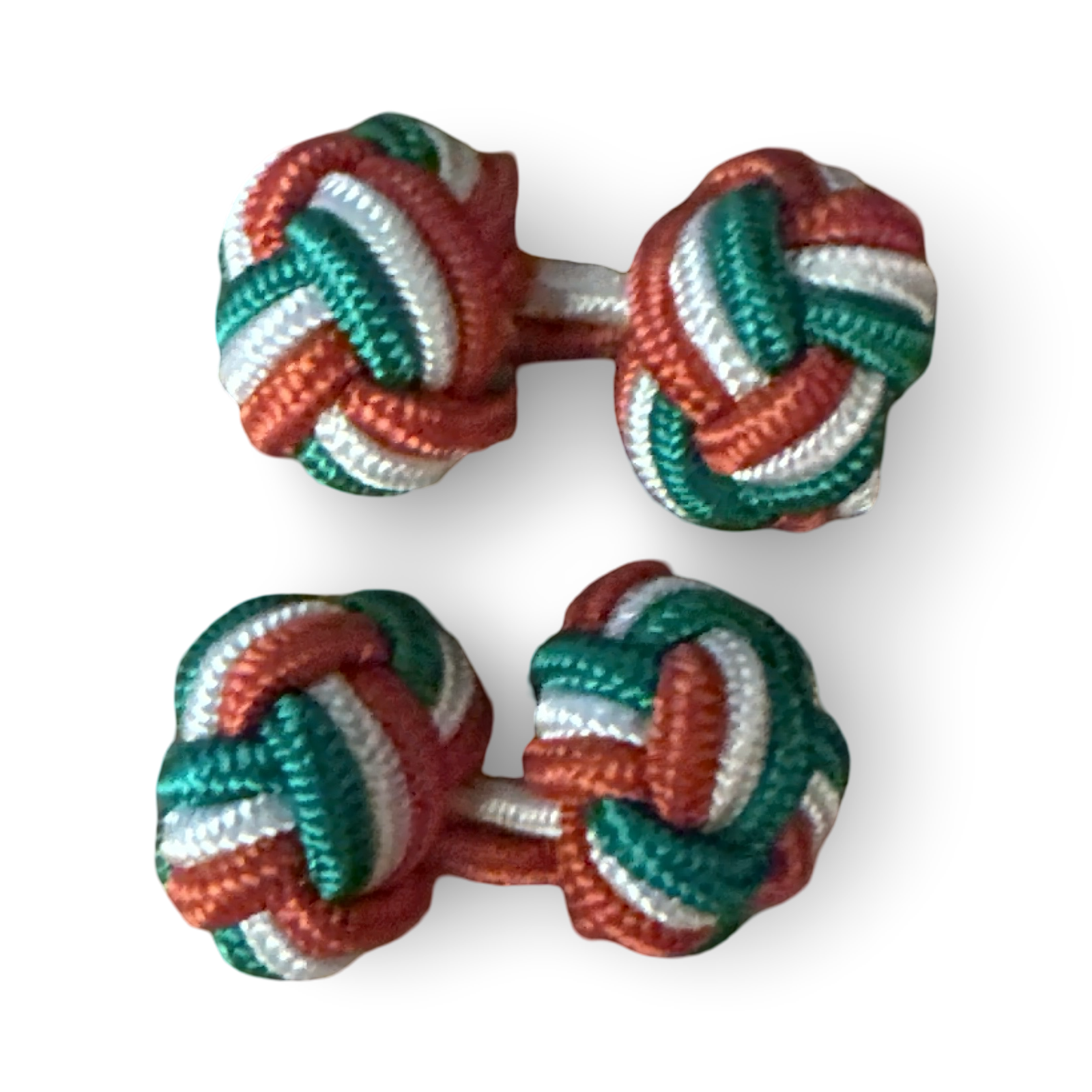 Design intrecciato a nodo con colori vivaci ispirati al tricolore italiano: verde, bianco e rosso.