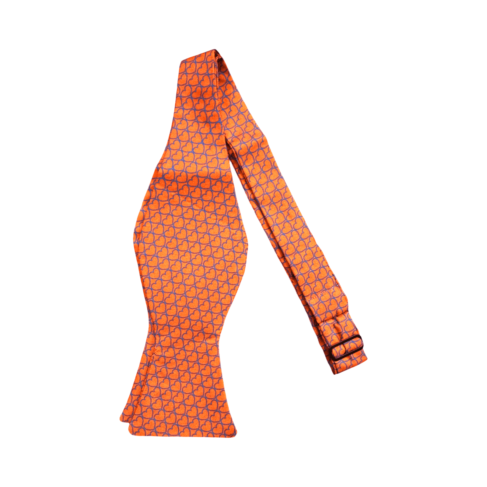 L’audacia del colore incontra la dolcezza di un pattern iconico. Questo papillon “self-tie” in seta arancione non è solo un accessorio, ma un simbolo di spirito libero e cura del dettaglio. La vivacità della base cromatica evoca un’eleganza solare e mediterranea, mentre la micro-fantasia a cuori azzurri aggiunge un tocco di ironia e distinzione britannica. Annodarlo a mano trasmette un messaggio chiaro: sei un uomo che padroneggia le regole dello stile e non ha paura di reinterpretarle con creatività.