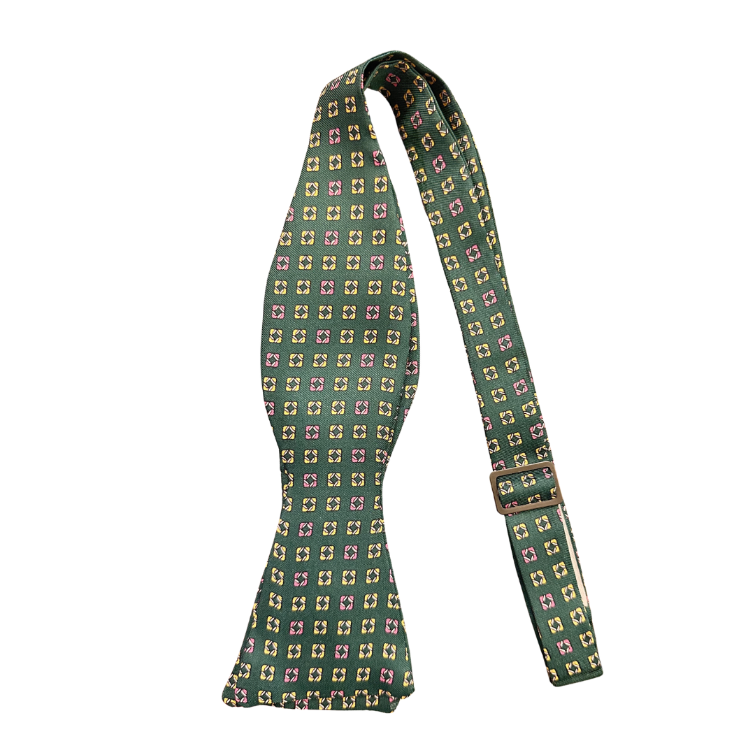 Il disegno geometrico bicolore rende questo papillon estremamente versatile. Si abbina magnificamente a un completo grigio fumo di Londra o a una giacca sportiva in blu navy. Grazie alla base verde, è l’accessorio ideale per spezzare la monotonia dei colori classici senza eccedere. Per un risultato ottimale, indossalo con una camicia bianca a collo francese e lascia che la struttura del nodo manuale esprima tutta la tua personalità sartoriale.