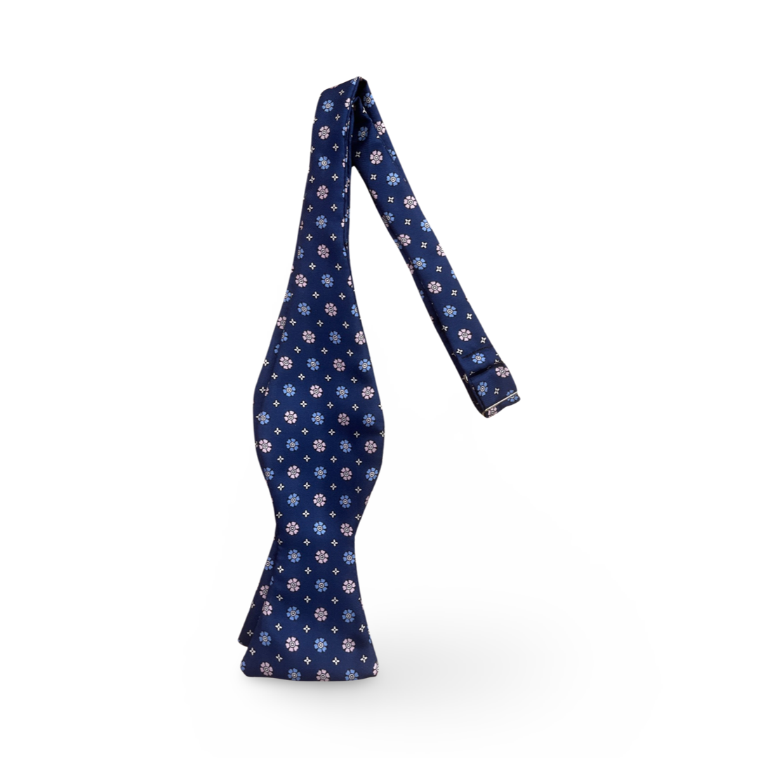 • Papillon di seta preannodato fantasia fondo azzurro