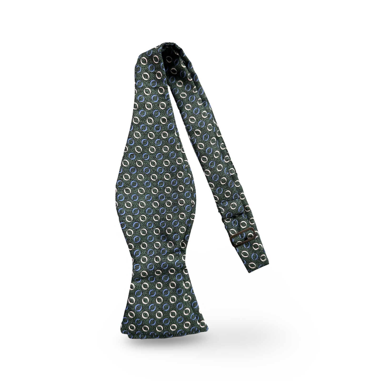 Papillon da annodare verde fantasia geometrica azzurra e bianco