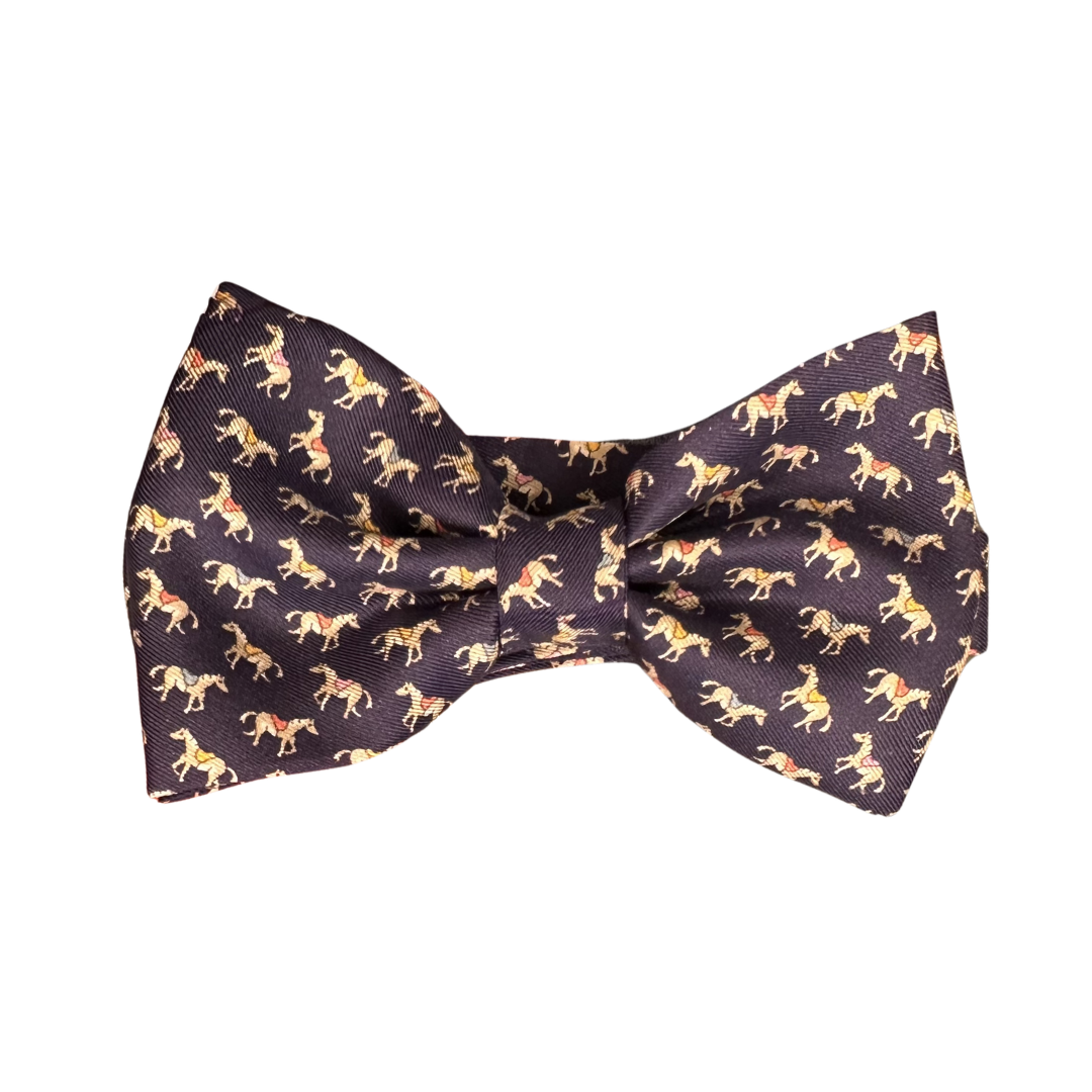 Il connubio perfetto tra lo spirito sportivo d’élite e la comodità moderna. Questo papillon, realizzato in pregiata seta, presenta un fondo blu notte profondo, arricchito da una micro-fantasia di piccoli pony che richiamano lo stile Old Money e la passione per l’ippica. La struttura preannodata garantisce un fiocco sempre simmetrico e pronto all’uso, ideale per l’uomo che apprezza la precisione estetica e la rapidità d’indosso, mantenendo un look sofisticato per tutta la durata dell’evento.