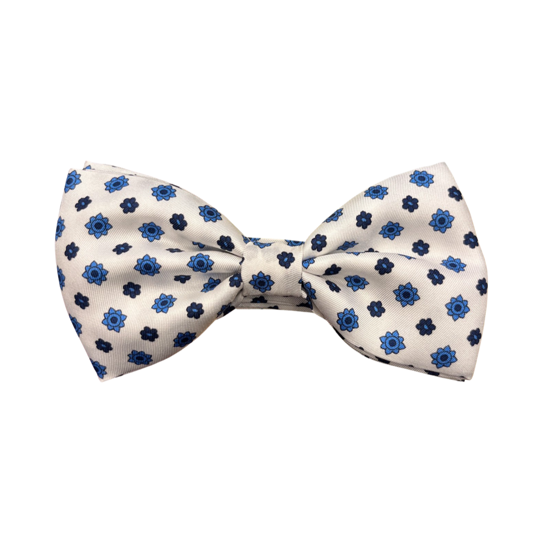 Papillon di seta preannodato fantasia fondo bianco