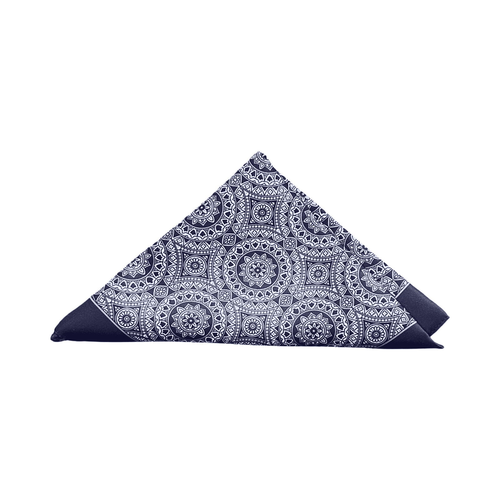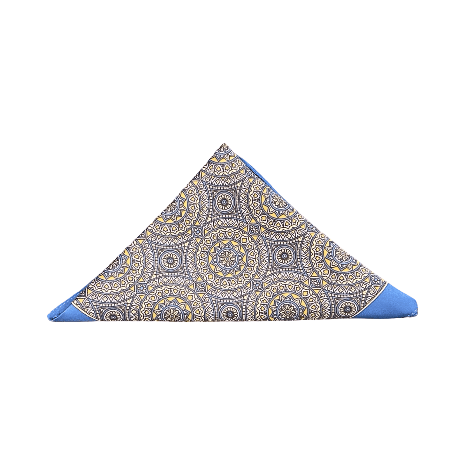 Pochette da taschino dal gusto raffinato, impreziosita da una fantasia geometrica ornamentale che richiama motivi classici rivisitati in chiave contemporanea. Un accessorio elegante e distintivo, ideale per completare look formali o smart casual con un dettaglio di stile ricercato. Perfetta per chi ama valorizzare l’outfit con discrezione e personalità.
