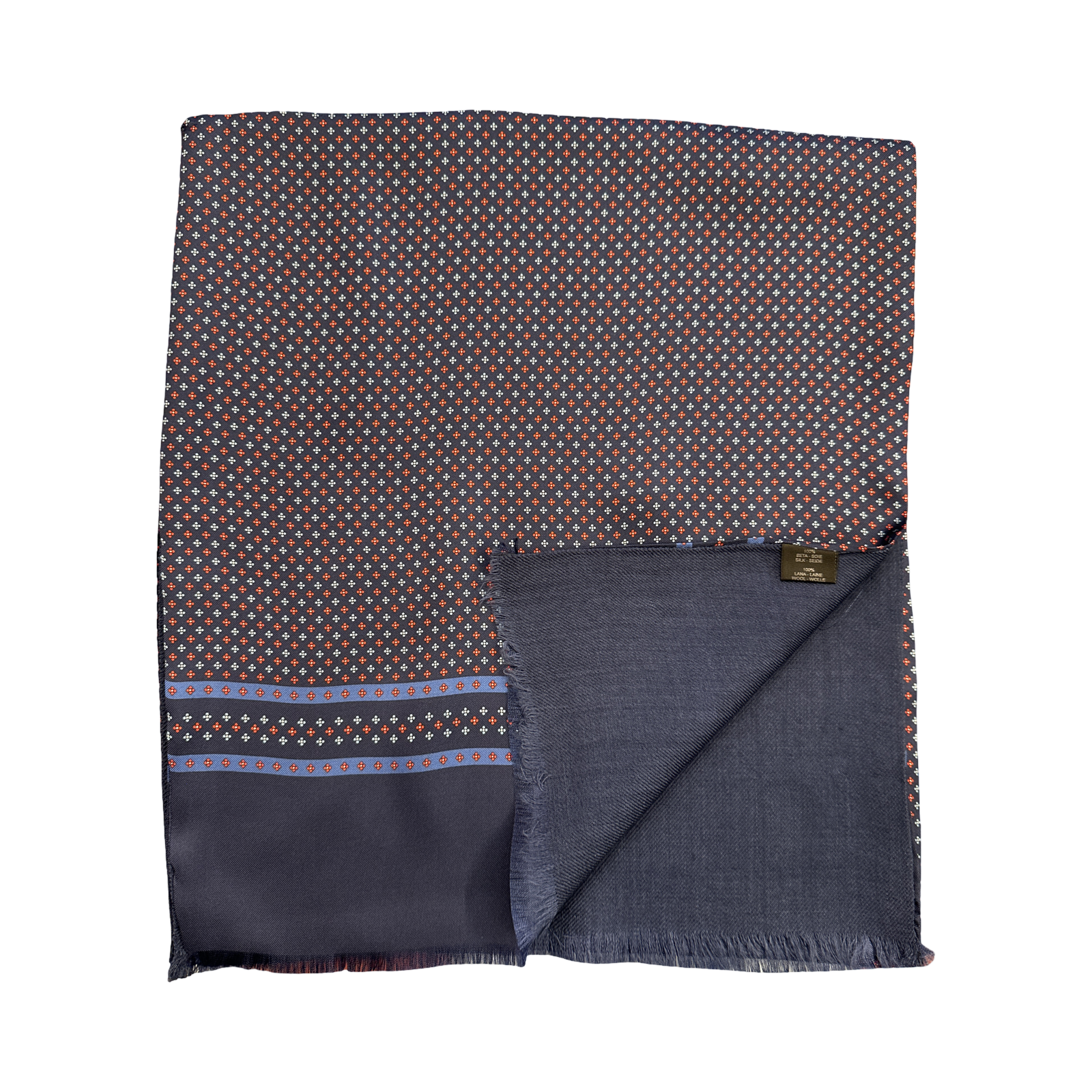 Sciarpa double in lana seta fantasia cravatta fondo blu