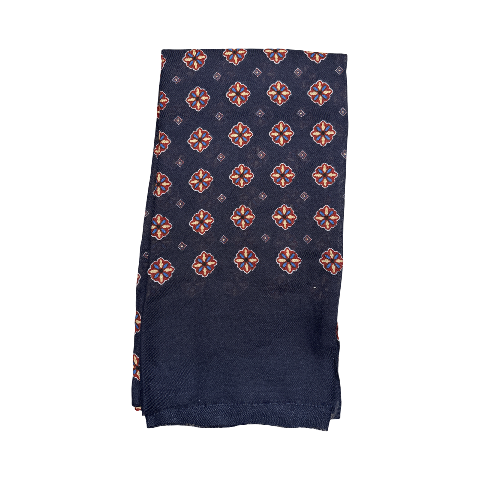 • Sciarpa double in lana seta fantasia cravatta fondo blu marino