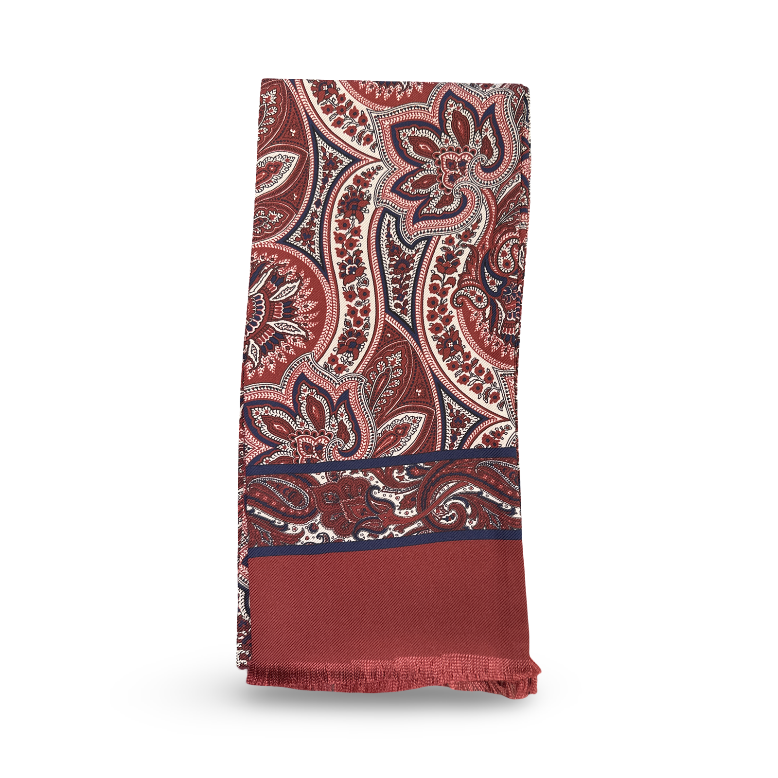 Sciarpetta tubolare in seta fantasia cashmire fondo bordeaux