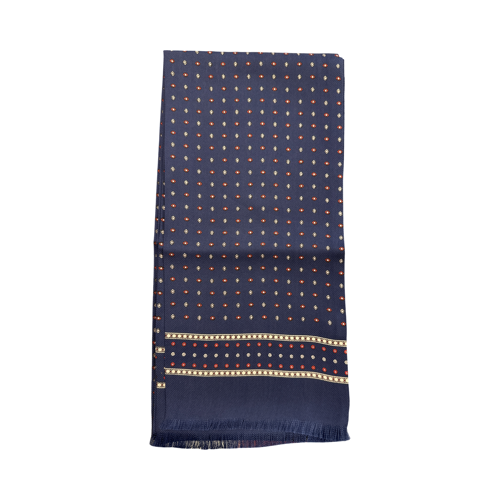 Sciarpetta tubolare in seta fantasia cravatta fondo blu marino