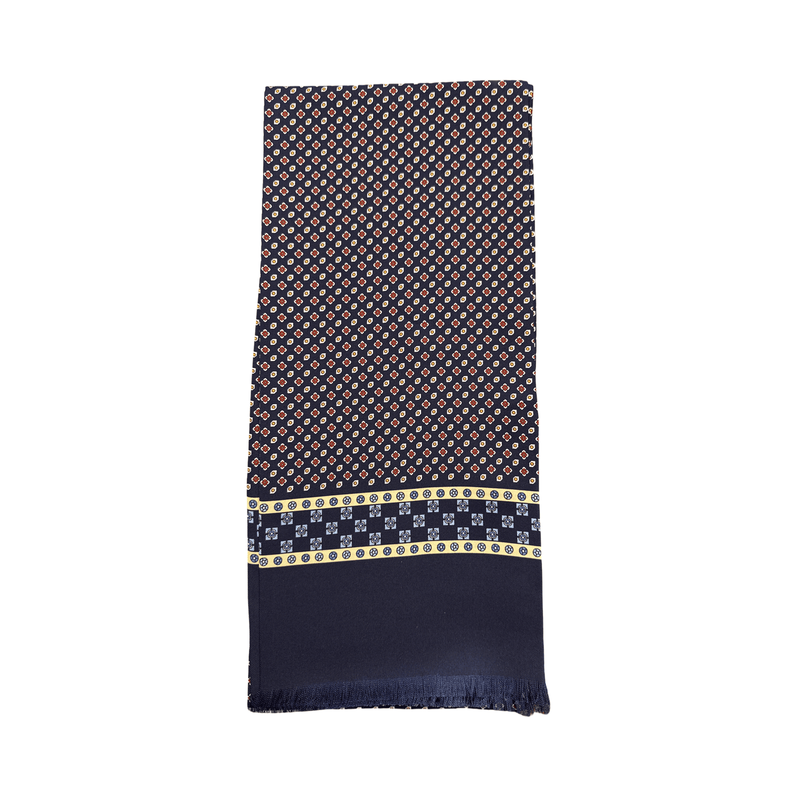Eccoci a un altro caposaldo dell’eleganza invernale firmata Barbisio. La sciarpetta tubolare in seta fondo bordeaux è, per definizione, l’accessorio dei grandi eventi e della stagione festiva. Il bordeaux è un colore che emana calore, autorità e una raffinatezza che non passa mai di moda, specialmente quando accostato a micro-fantasie di derivazione sartoriale.