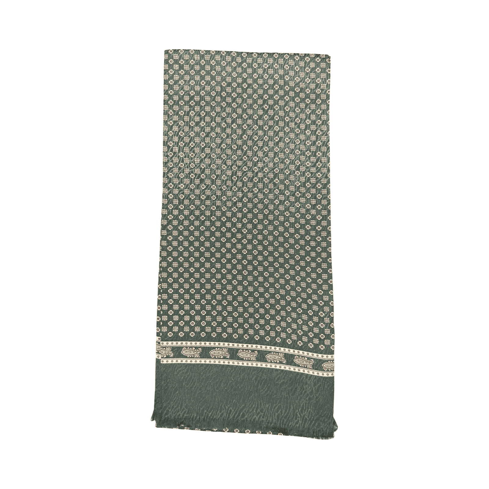 Il fondo verde scuro rende questa sciarpa straordinariamente versatile: si sposa alla perfezione con cappotti color cammello, blazer blu navy o completi grigio antracite. La vestibilità tubolare la rende l’accessorio ideale per l’uomo che cerca la precisione: può essere indossata con un nodo semplice o lasciata cadere morbidamente all’interno della giacca per un’aria “effortless chic”. È l’elemento che trasforma un abbigliamento classico in una dichiarazione di stile personale.